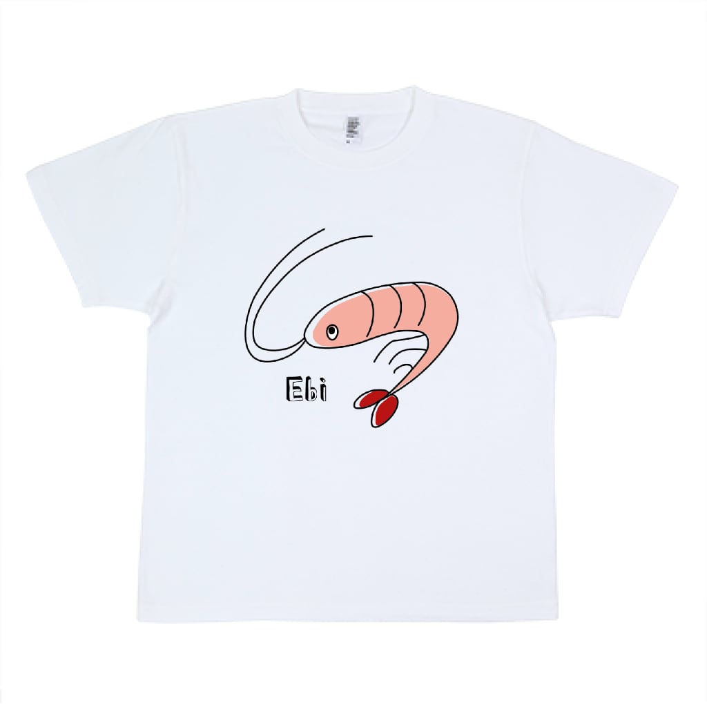 エビのTシャツです。部屋着もお出かけもどちらもおすすめ。エビ好きにおすすめ。
