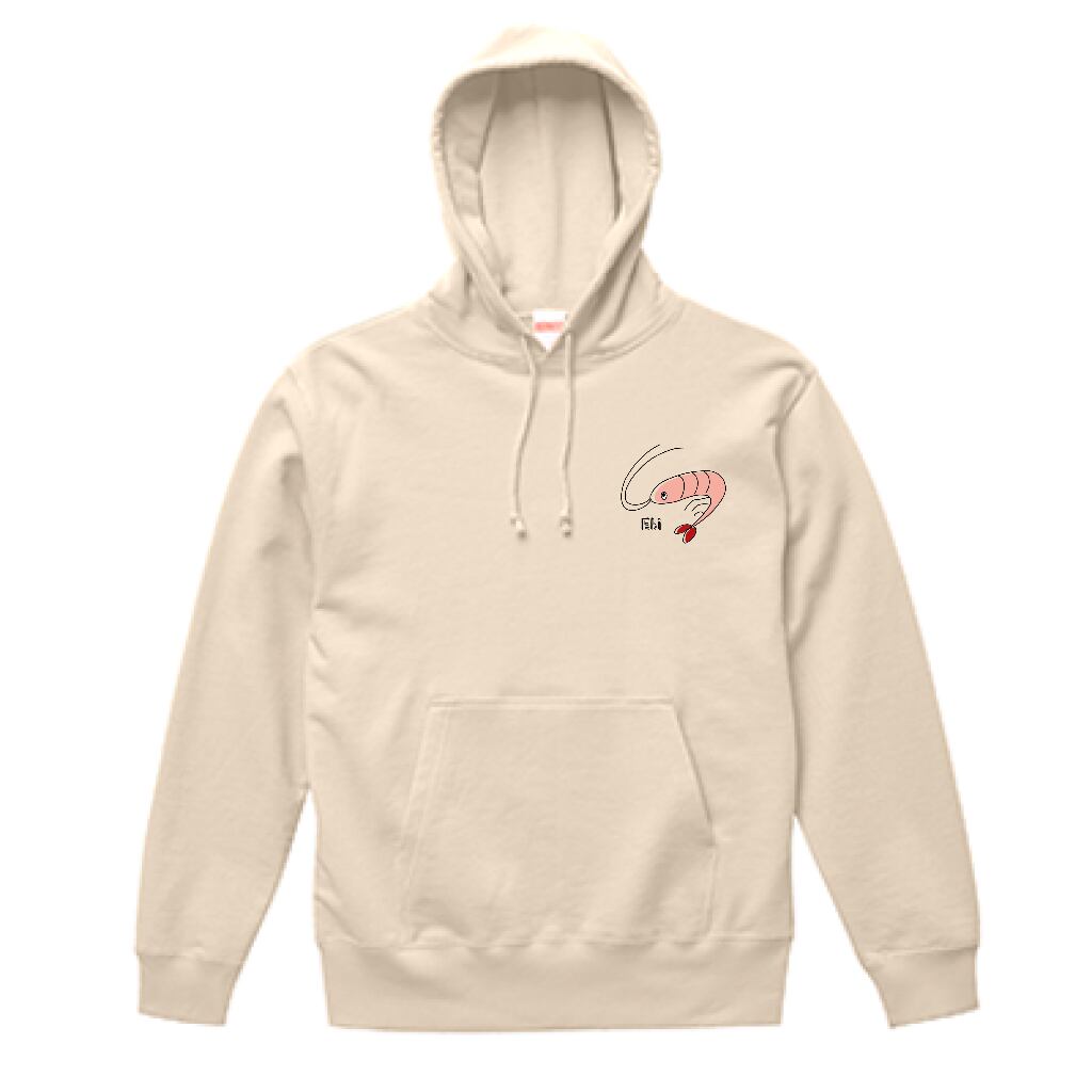 エビのパーカーです。部屋着もお出かけもどちらもおすすめ。エビ好きにおすすめ。